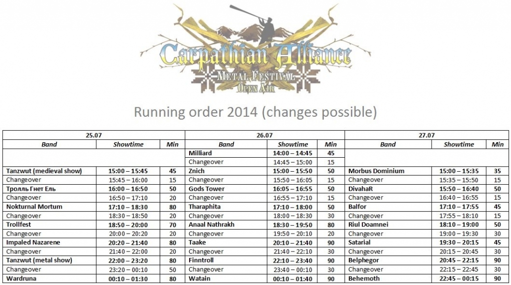 Да сустрэчы на «Carpathian Alliance Metal Festival-2014»! А пакуль узгадаем, як гэта было раней, палюбуемся карпацкімі краявідамі і паглядзім крыху фотаздымкаў з выступаў гуртоў на мінулых CAMF’ах.