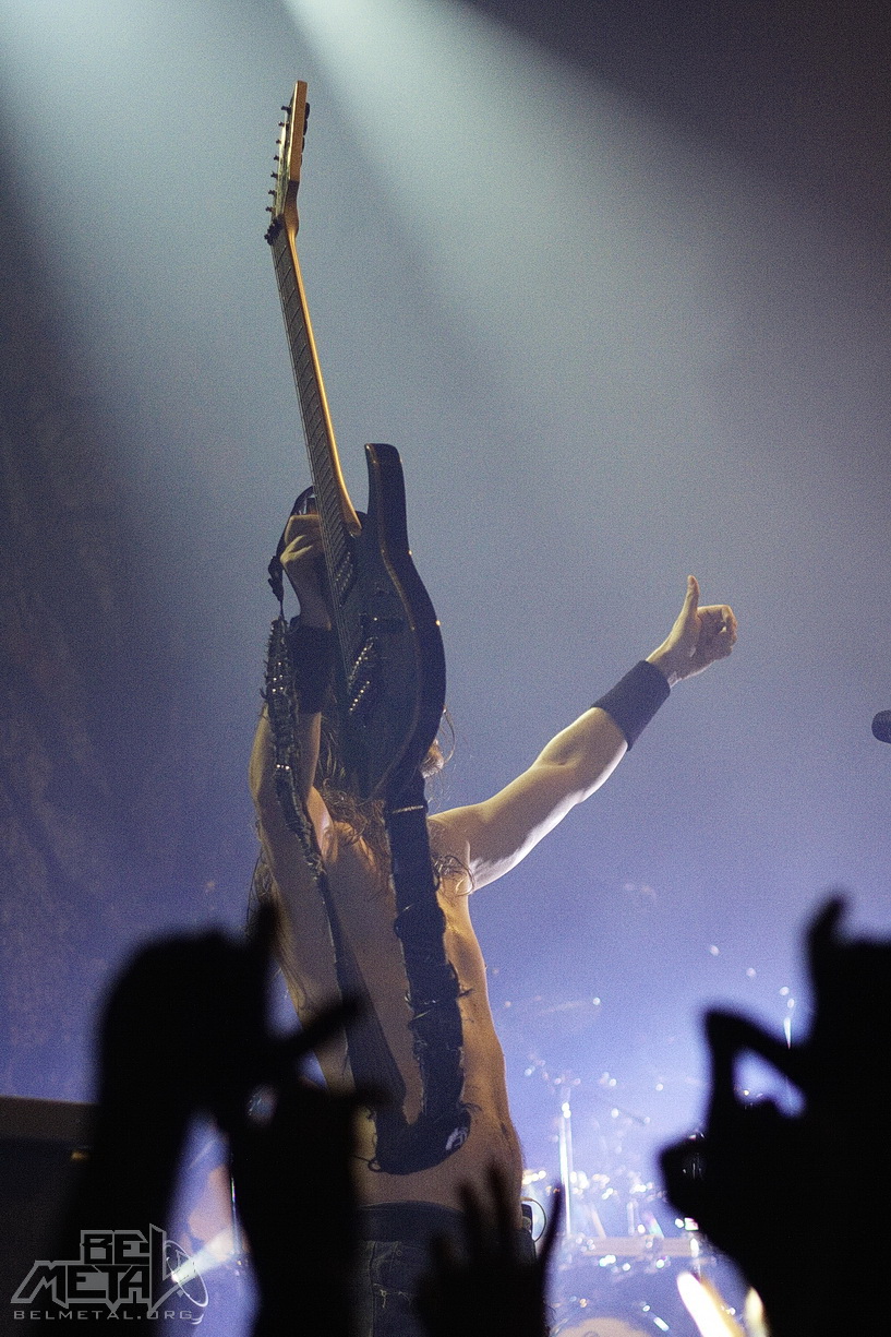 Што тычыцца гуку, то тут мяне ўсё больш чым задаволіла, аніякіх відавочных недахопаў я не пачуў. Вакал быў выдатны – што ў прынцыпе асноўнае. Гітарысты таксама малайцы: у некалькіх момантах мужчынскі гроўл у адсутнасьці Сымоны, дапоўнены адпаведнымі гітарамі, нагадваў навогул ледзь ня блэк-метал – ня ведаю, адкуль у мяне ўзялася такая асацыяцыя, але нешта такое было. Спадабаўся клавішнік – вельмі жывы і харызматычны персанаж: увесь час даваў жару. Ды й увогуле, музыкі класна ўзаемадзейнічалі з залай і не давалі засумаваць, любілі падыграць адно аднаму на чужым інструменьце. Шчыра дзякавалі беларускай публіцы, адзначылі, што менавіта гэты канцэрт зьяўляецца юбілейным, пяцідзясятым у іхным туры.