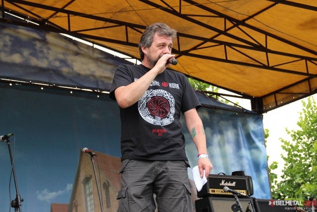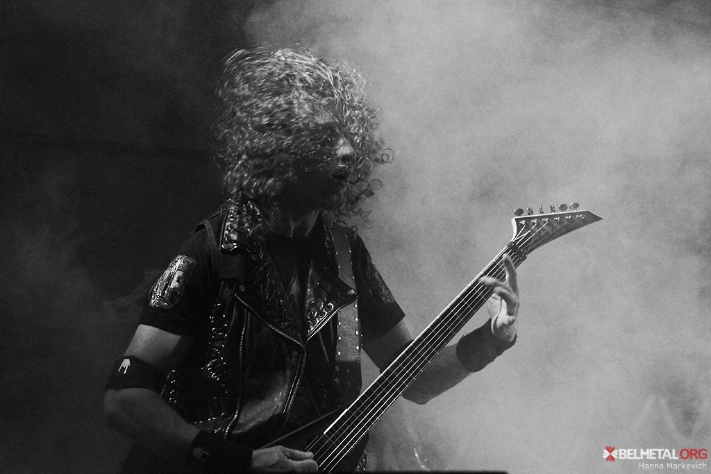 Пасьля такога зараду самы час быў сустрэць хэдлайнераў дню ад Беларусі – Gods Tower. А адзінаццатай пачалася іх наладка, якая расьцягнулася на 40 хвілін. Публіка паслухмяна чакала… І тут здарыўся паварот. Ня будзем прыводзіць усе падрабязнасьці, але сэт ГТ прыйшлося адкласьці. Сваю наладку пачалі Vader і рабілі гэта, мякка кажучы, доўга. Вельмі доўга. Людзі дачакаліся, атрымалі сваё – убачылі перад сабой у Дудутках адну з іконаў цяжкога металу. Вось толькі Пётр, здаецца, меркаваў, што знаходзяцца яны ў беларускай сталіцы, штораз усклікаючы “Мінськ!” Поўная цемра, звар’яцелыя фанаты. Менавіта тут адбываліся найцікавейшыя гісторыі. Адзін зламаў палец, другі – нагу, яшчэ адзін, са словаў відавочцаў, слэміў цалкам голы… Патусілі як мае быць :D