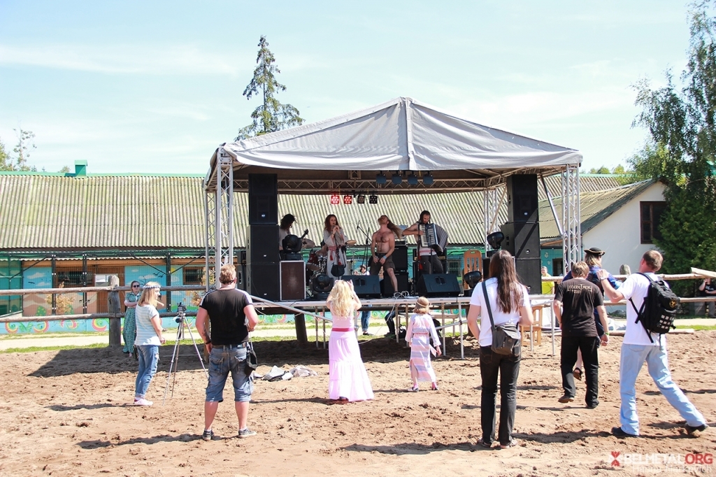Але мяне перш-наперш уразіла месца, на якім у гэтым годзе зрабілі другую сцэну: музыкам давялося выступаць наўпрост ў конскім загоне. Атмасферу дапаўняла адпаведнае амбрэ з канюшні і пяшчаны “танцпляц” з кавалкамі конскага лайна. Мясіць яго не хацелася, таму я разьмясьцілася ля агароджы і пачала назіраць за выступам Ceilidh Ceol – адраджэнцаў кельцкіх музычных традыцый зь беларускім ухілам. Даволі часта даводзіцца чуць гурт як на вялікіх фэстах, так і ва ўтульных пабах. Адметнай жа рысай гэтага выступу стала прэзентацыя песьні “Сыны старадаўняй Літвы” – пераклад Алеся Чумакова, прысьвечаны шасьцісотай гадавіне перамогі пад Грунвальдам. Увогуле ж успрыяцьцю акустычнай музыкі перашкаджаў працуючы побач генератар.