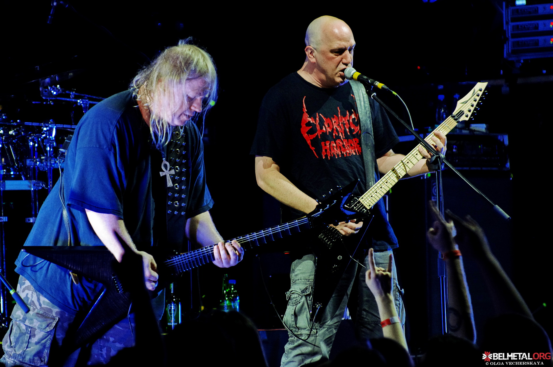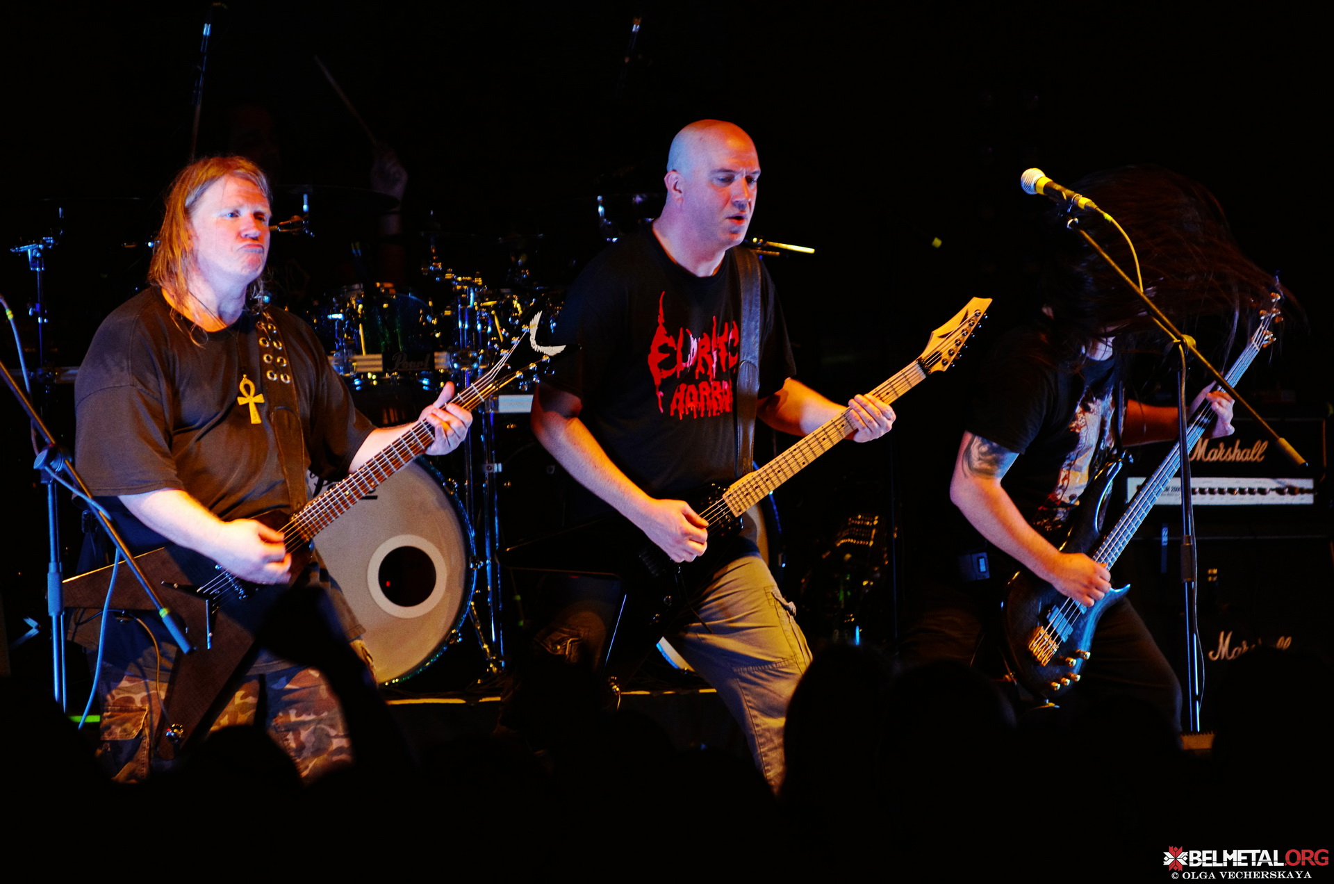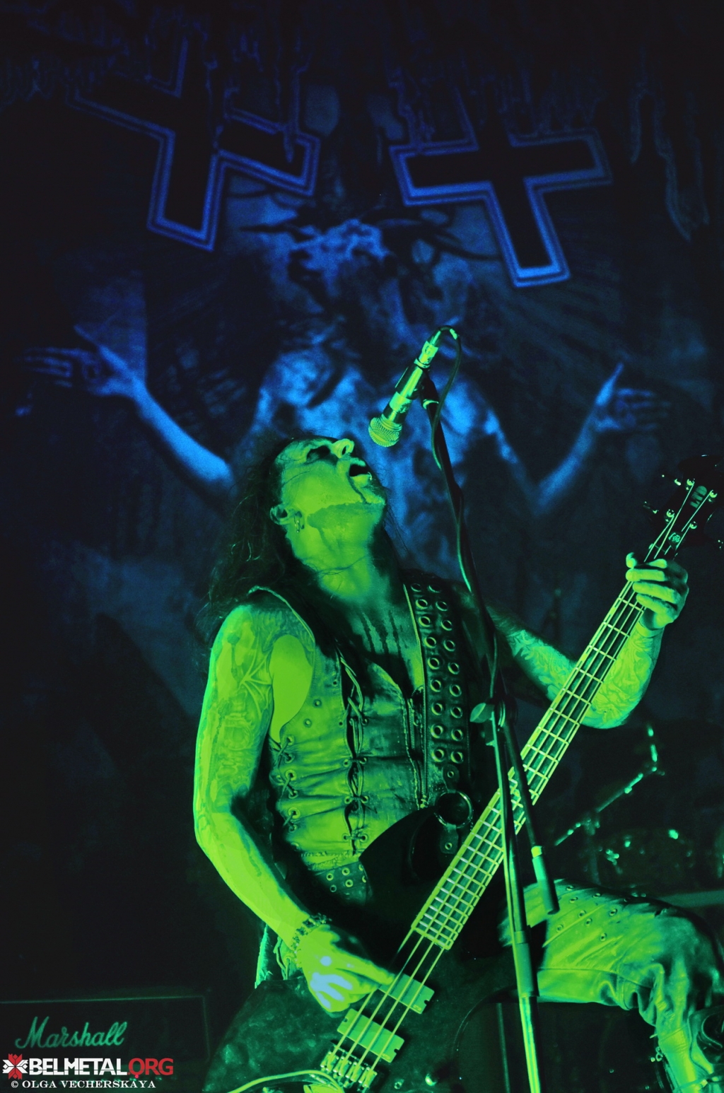 Тым часам, час ужо пераваліў за дзясятую гадзіну, на сцэне зьявіўся аграменны заднік з лога Belphegor, а ў зале павеяла ладанам. На сцэне зьявіліся чэрапы і адмысловая фірмовая мікрафонная стойка для Хельмута. Тыя, хто сумняваўся, ці будзе менскі канцэрт адбывацца пры поўным парадзе, пры выглядзе гэтай сцэнічнай атрыбутыкі супакоіліся. На сцэне зьявіліся музыкі. І… бязь лішніх словаў началі наразаць сваю праграму. Злавеснае сьвятло, прыглушанае да максімуму, воблакі дыму, у якіх час ад часу губляліся постаці музыкаў. Шоў Belphegor гэтым вечарам дакладна перамагло ў Nile па частцы відовішчнай, што таксама адчувалася і па фанатах. Амаль пагалоўна яны застылі на танцпляцы, пагружаныя ў рытуальныя падзеі, якія адбываліся на сцэне. Стома пасьля ўгару пад Nile тут ні пры чым. Хельмут на практыцы паказаў, што на дробязі ён не разьменьваецца і кожнае шоў – гэта эталон якасьці. Так было і ў Менску. Шкада, што выступ праляцеў занадта імкліва. Хацелася больш. Але, мы ўсё ж убачылі выступ Belphegor, і гэта галоўнае. Дзякуй усім за вечар!Тэкст: Ігар Богуш