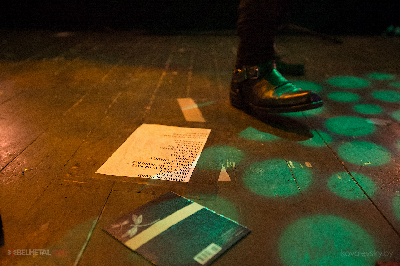 Трохі падкачаў гук. Традыцыйна пад сцэнай вакал быў чутны прыглушаным, назіралася каша паміж гітарамі. Доўга наладжваліся, а па факце маем ня самы ўдалы вынік з тэхнічнай часткі. Але, хочацца верыць, крыху далей ад сцэны гук быў лепей. Рухаемся далей.