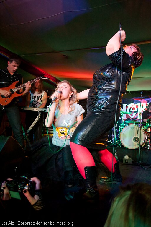 А вось уласна і адны зь іх. З-пад Цьверы родам, ржэўскіх зямель гурт Silphidae. З двухсэнсоўнай назвай, як і яны самі. Прыгажосьць ды брутальнасьць (нават у музычным плане) у адным, анёл і дэман на адной сцэне, і ўсё гэта абгорнута ў цікавую музычную структуру. Брутальная цётка, якая нават вельмі мілая па-за сцэнай у гутарцы, і далікатная, але галасістая супрацьлегласьць – дзяўчына ў кедах і балетным пачцы… Так скажам, б’юці энд зэ біст! Упэўнены гроўл і скрым, тэхнічна якім валодае Люба (яна ж Гелла) ну ніяк не супастаўляўся зь ёй, жанчына не складала такога ўражаньня… цудоўная праца з залай – на мой погляд выглядала празьмерна тэатральна, але сачыць за гэтым было весела. Асабліва цікавымі былі моманты калі Люба той час кагосьці з тых, хто стаяў побач са сцэнай, хапала за чэрап і лісьліва нешта гроўліла ці скрыміла. Аблізвала гітарную стойку ў межах нейкага перфомансу і вобразнасьці, народ лямантаваў і дружалюбныя крыкі таму пацьверджаньне. Потым усё ж гэта ўсё спарадзіла не на адну старонку халівары ў івэньце канцэрта ўкантакце. Але! Гэта было мегакрута, усё гэта пранізваў другапланавы, а часам і асноўны чысты голас напару зь віяланчэльлю. Разумная ды прадуманая музыка. Гэта нават праглядвалася і ў каверах, якія гурт выканаў на ўласны лад і па-расейску. У сярэдзіне сэта прыемна зьдзівіла трактоўка рамштайнаўскай “Mutter”, ну а напрыканцы госьці дабілі мой мозг сваім бачаньнем песьні ірландцаў The Cranberries, песьні дзяцінства многіх – Zombie! Ня гледзячы на ўсю гэтую вульгарнасьць і камічнасьць асабіста мне спадабалася. Гледзячы на натоўп, які скакаў і ўгараў пад іх песьні, публіка прыняла выдатна, але як высьветлілася, былі супраціўнікі гэтага дзейства, але, тым не менш, зала не пусьцела… А вось пазьней адпісваліся некаторыя блогеры і дамарослыя крытыкі, якія жорстка асуджалі лінейную накіраванасьць гурта і іх падачу сябе як такіх. Пытаньне, дзеля якой “галачкі” вы стаялі пад сцэнай? Не зразумела.