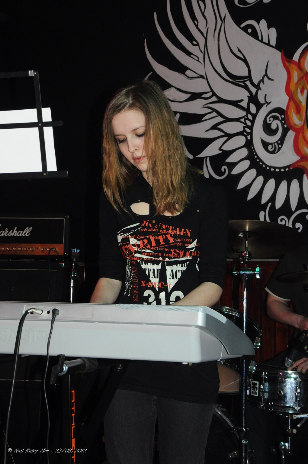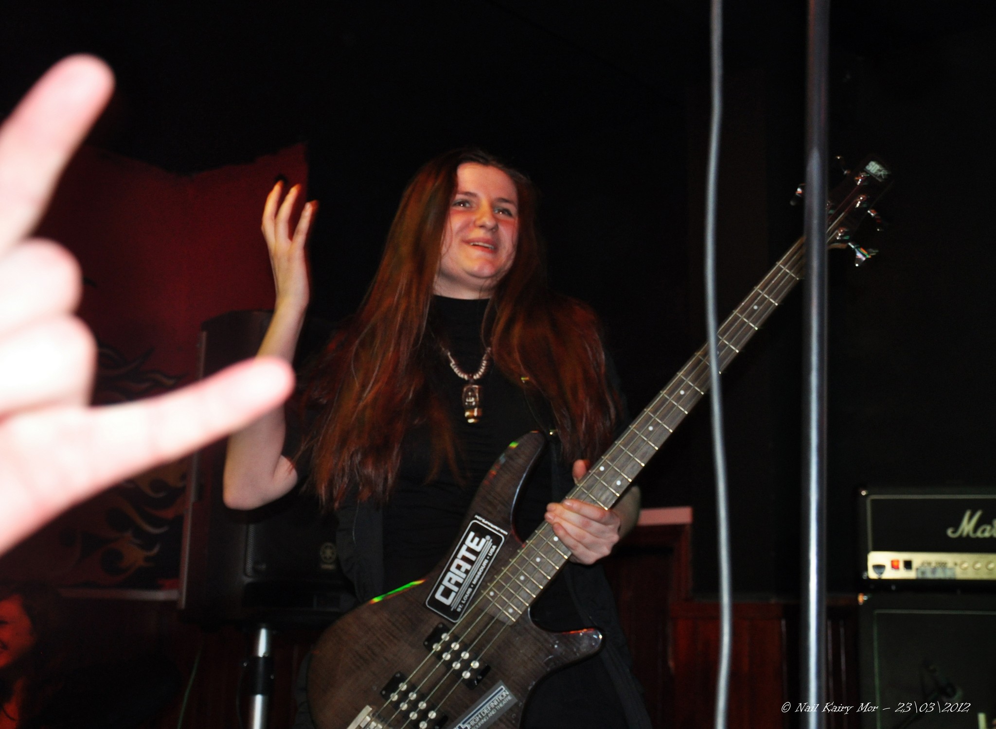 Banshee… Выступаць першымі — гэта заўсёды цяжка. Выступаць на разагрэве, калі публіка яшчэ млявая і абыякавая — і вожыку зразумела, што не добра. АЛЕ! Можна было залажать адну песню… а не практычна ўсё. Хто такая Баньши? Даслоўна — Крыклівая Ведзьма)) © Gretta fon Tias.