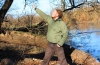 Мы спусьціліся на бераг Беразіны і затрымаліся ў гэтым карагодзе фарбаў надоўга: скакалі па валунах, лазілі па дрэвах і кустоўях, папівалі гарбатку, а Паша нават паламаў раку, а дакладней – цьвёрдыя кавалкі ільда, якім ужо пасьпела зацягнуцца сонная водная прастора.