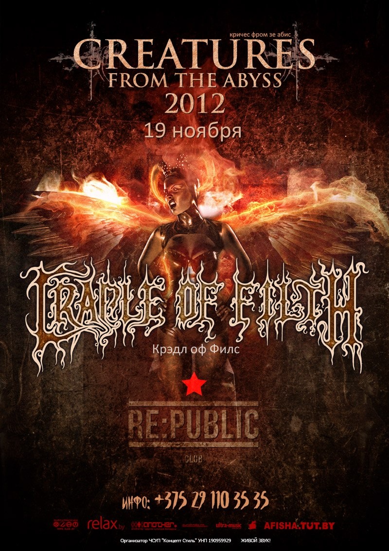 CRADLE OF FILTH 19 лістапада ў менскім клубе Re:Public.Пачатак а 19:00.