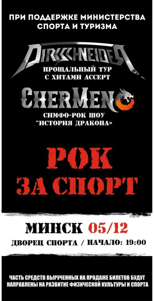 U.D.O зноў наведае Менск 5 сьнежня. Гэтам разам у рамках разьвітальнага BACK TO THE ROOTS WORLD TOUR 2016 зь лепшымі хітамі Accept. Пры падтрымцы рок-гурта CherMen.Палац спорту, пр. Пераможцаў, 4