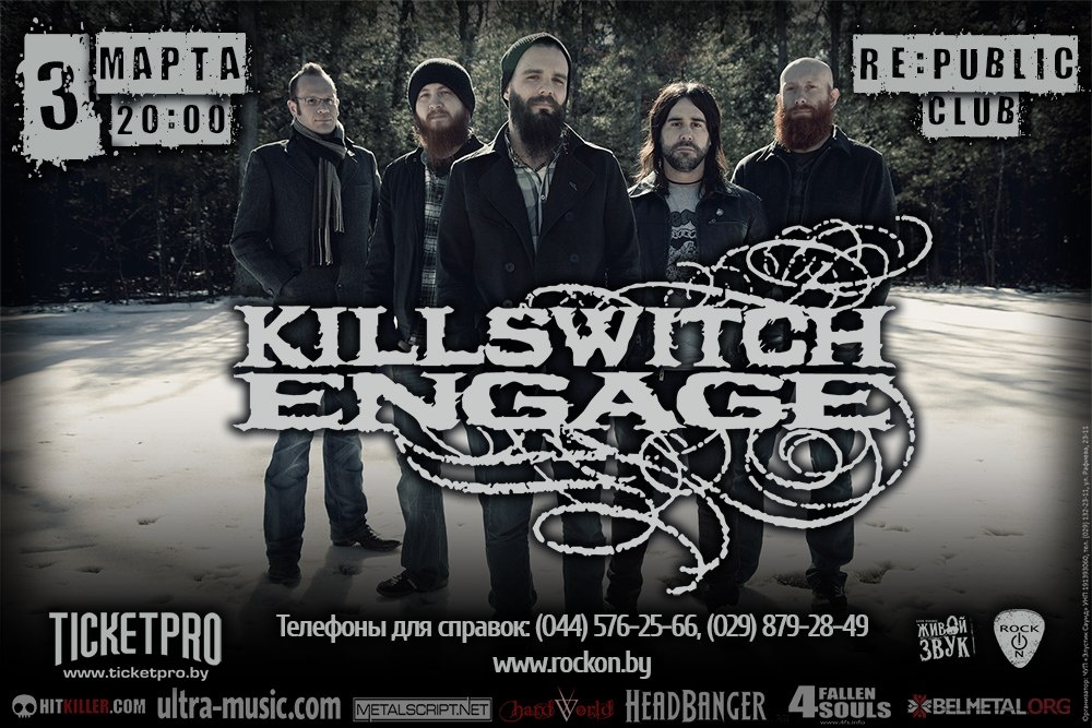 Killswitch Engage (melodic metalcore, Бостан, ЗША) у Менску!Клуб "Re:Public", вул. Прытыцкага, 62