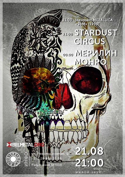 21:00 (кіназала) METALLICA «S&M» (1999) — сумесная канцэртная кружэлка гурта Metallica і сімфанічнага аркестра Сан-Францыска под кіраўніцтвам Майкла Кеймэна(1999г.)23.00 STARDUST CIRCUS