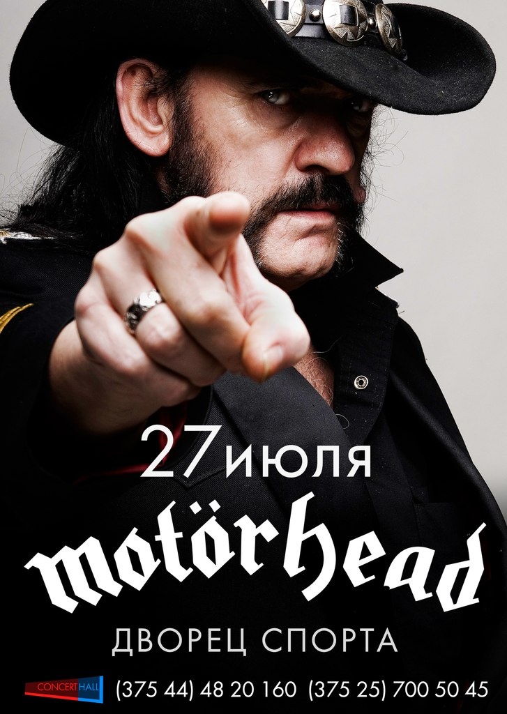 Легендарныя брытанцы Motorhead выступяць 27 ліпеня ў менскім Палацы Спорту. Адзін з самых уплывовых гуртоў у сьвеце цяжкай музыкі прывязе праграму лепшых песень і новы альбом «Aftershock».Арганізатар: «Концерт Холл Групп»