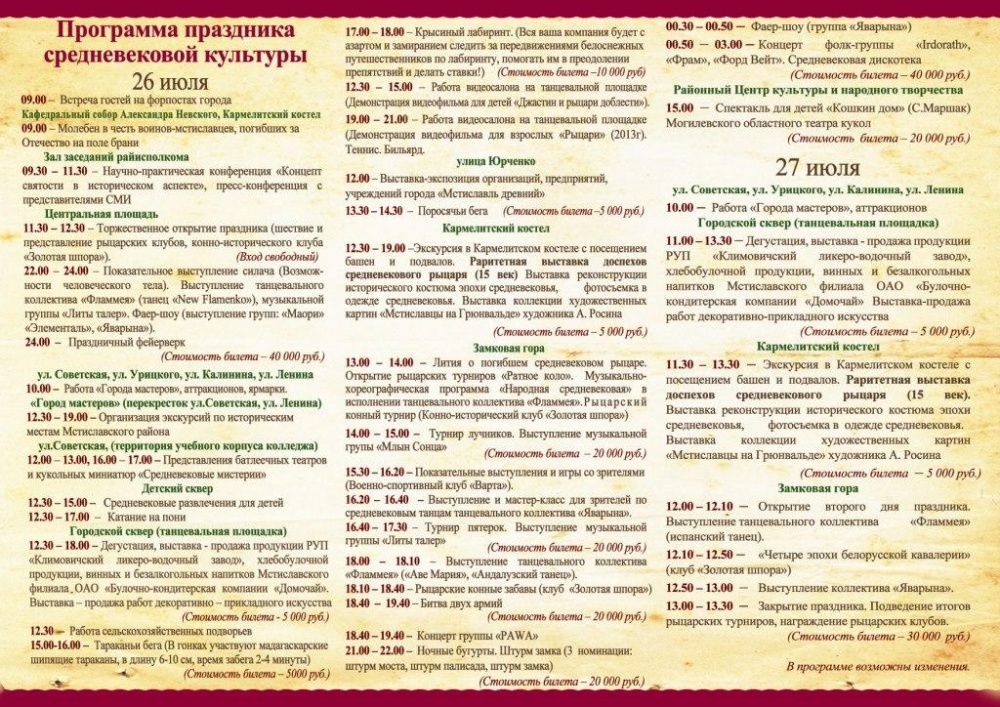 Месца: Замкавая гара (месца існаваньня Мсьціслаўскага замка у Xll – XV ст.ст.)У праграме фестывалю: