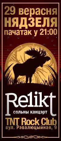 Гурт Re1ikt сьвяткуе народзіны свайго бас-гітарыста Змітра Наркевіча ў TNT Rock Club (Рэвалюцыйная, 9) 29 верасня. Выступ стане першым сольным клубным канцэртам Re1ikt пасьля летніх замежных і беларускіх фестываляў. Музыкі рыхтуюцца выканаць новыя песьні з будучага альбома, а таксама зайграюць найлепшыя ўлюбёныя кампазіцыі і каверы.Кошт: 40 тыс. бел. руб.