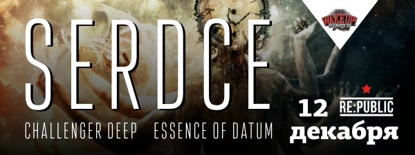 12 сьнежня а 19 гадзіне ў клубе RE:PUBLIC з прэзентацыяй новага альбому выступяць беларускія прог-дэз металісты Serdce.Пры падтрымцы: