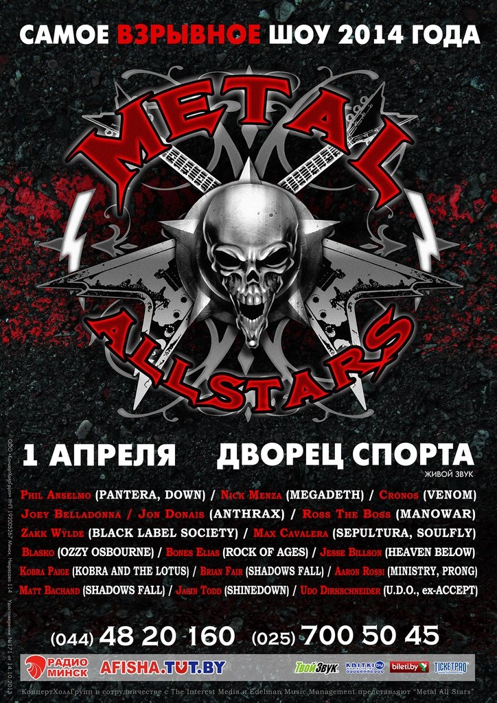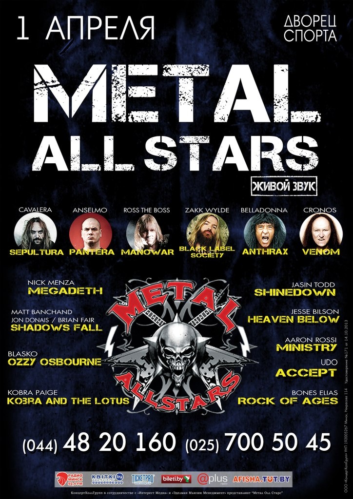 Праект The Metal All Stars пройдзе ў Менску 01 красавіка 2014г. ў Палацы Спорту(пр. Пераможцаў, 4).Канцэрт будзе пабудаваны як шоу ўсіх музыкаў, у якім кожны з удзельнікаў прадставіць 4-5 самых вядомых кампазіцый свайго гурта.