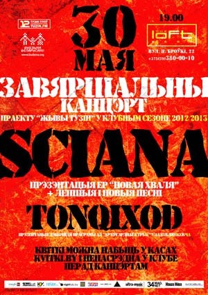 Шаноўнае спадарства, запрашаем Вас на апошні ў гэтым сезоне «Жывы Тузін» з удзелам выдатных гуртоў!!!З вялікім канцэртам выступіць гурт Sciana!!!