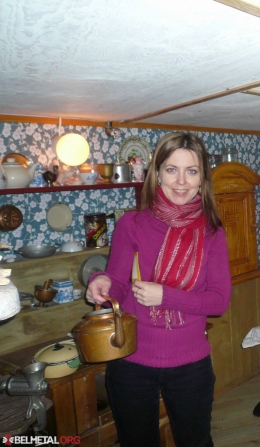Цалкам супакоiўшыся, я павольна хiсталася ў кабiне i прыслухвалася, як Пятро пiярыць трактарысту праект BelMetal як усевядомы музычны партал, а мяне – як крутога дасьледчыка i журналiста. Я амаль што заснула, калi раптам пад гучнае «:*%;:?* тваю маць!!!» трактар, тузаючыся, затармазiў i крыху завалiўся на бок. Спачатку я наогул не зразумела, што адбылося. Пасьля толькi заўважыла, як пярэдняе кола iмклiва зьнiкае ў лесе, а пад кабiнай расьцякаецца чорная масьляная лужына… Пэўны час мы сядзелi нерухома i ўсьведамлялi, што цудам пазьбеглi жудаснай аварыi. А пасьля вылезьлi з кабiны i, ўбачыўшы касабокi трактар на адным коле, пачалi iржаць так, што ад сьмеху ледзь жываты не надарвалi. Пятро зь кiроўцам прыкацiлi зь лесу непаслухмянае вольналюбiвае кола, я патэлефанавала па нумару на кардонцы сябру хлопца, i паселi на дарозе чакаць дапамогi.
