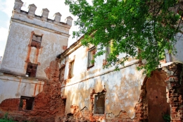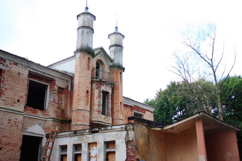 Хутка дабралiся да скрыжаваньня i крыху разгубiлiся: куды далей? Але тут я разглядзела сярод гушчару дрэў на прыгорку збудаваньне, што, мяркуючы па фотаздымках зь Дзям’янкаў, якраз нагадвала палац Герардаў, i мы ўзрадавана рушылi праз зарасьнiкi да нашай цяжкадасягальнай архiтэктурнай мэты.