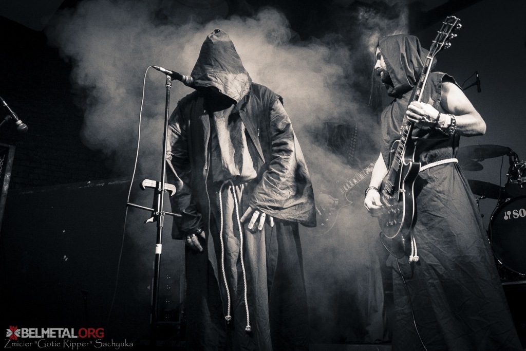 І нарэшце надышоў час для нашых замежных сяброў, хэдлайнераў канцэрту – французскага гурта AIN. Ніхто нічога пра гэтых хлапцоў ня ведаў, інтэрнэт не рэагаваў на запыт, выдаваў адно што некалькі фотаздымкаў, па якіх, аднак, было зразумела, што нас чакае поўны блэк. Я не аматар гэтага стылю і не спецыяліст, але ж цікава было зірнуць, што за таямніцы хаваюцца пад капялюшамі ва ўтойлівых французаў і якімі ўсё ж музычнымі сюрпрызамі яны зьбіраюцца зьдзівіць беларускую публіку, таму вырашыла адразу – што б на сцэне не адбывалася, застануся ўважліва глядзець да канца.